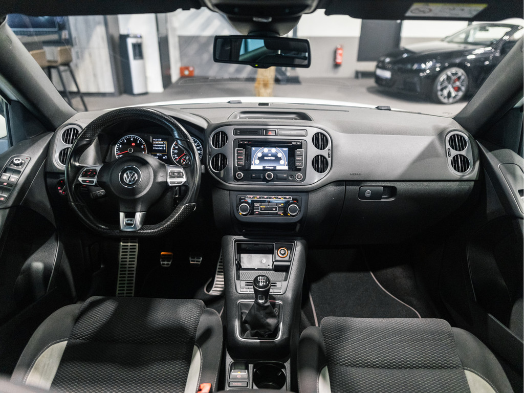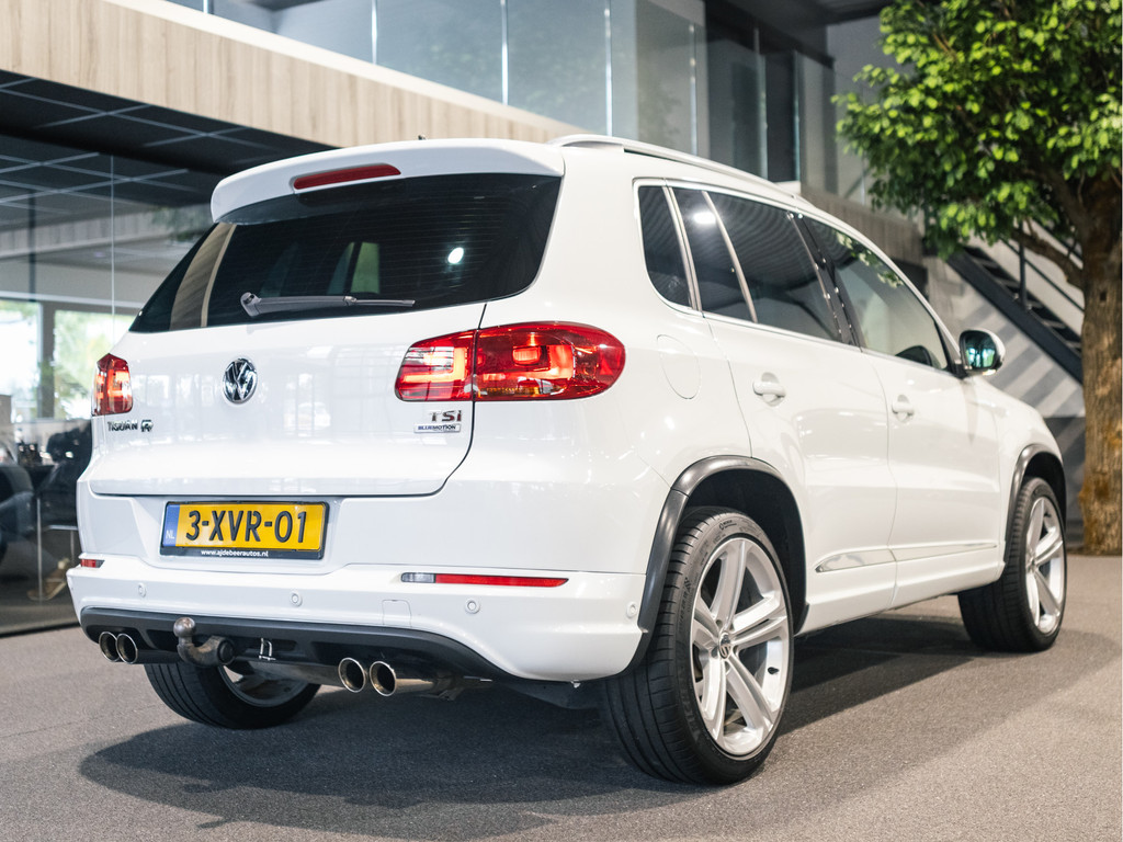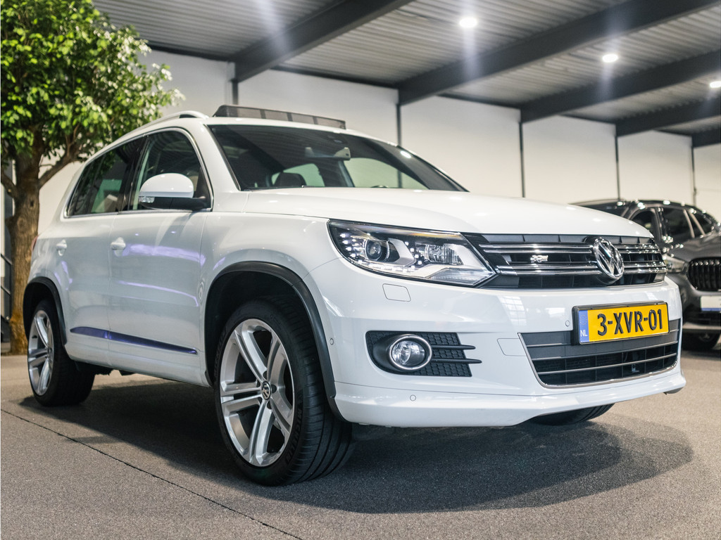 Met een auto als deze Volkswagen Tiguan komt u absoluut goed voor de dag. Deze auto komt uit 2014. Van binnen en van buiten is deze Volkswagen Tiguan uitgevoerd in R-Line styling. Sportief, stoer, eigenwijs. Een belangrijke eigenschap van iedere Volkswagen is zijn duurzaamheid. Dat ziet u ook aan deze Tiguan. De aandrijving van deze Volkswagen wordt verzorgd door een viercilinder benzinemotor en een handgeschakelde zesversnellingsbak. Uitstekende zitsteun en een strakke look? Daar zorgen de sportstoelen voor! Dat noemen ze nou een ruimtelijk effect: het elektrisch bediende glazen panoramadak. Met de krachtige xenonverlichting rijdt u ontspannen in het donker. Tot de voorzieningen van deze auto behoren 18 inch lichtmetalen velgen, sportonderstel, dakspoiler, donker getint glas achter en snelheidsafhankelijke stuurbekrachtiging.