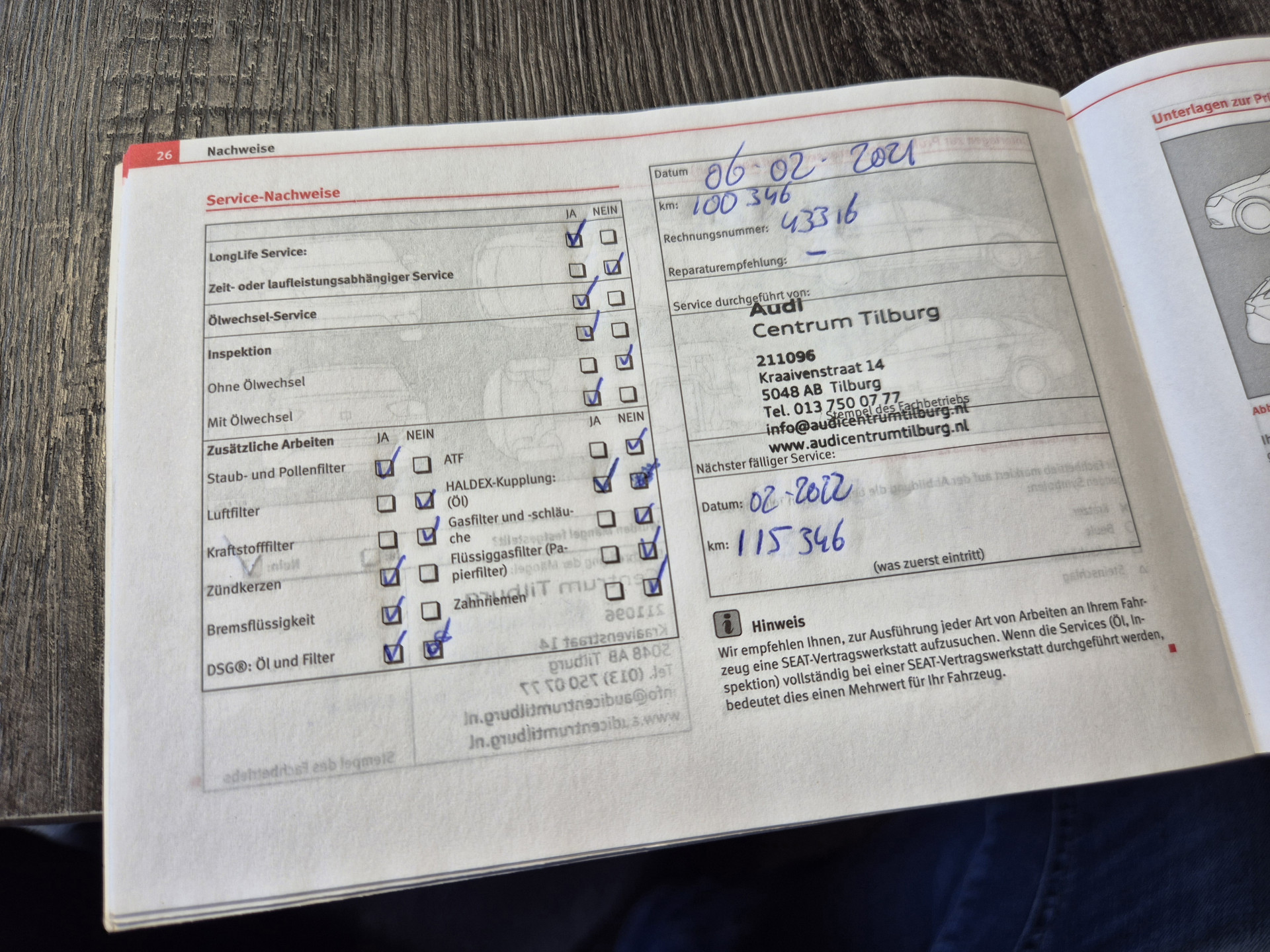 - onderhoudsboekjes aanwezig