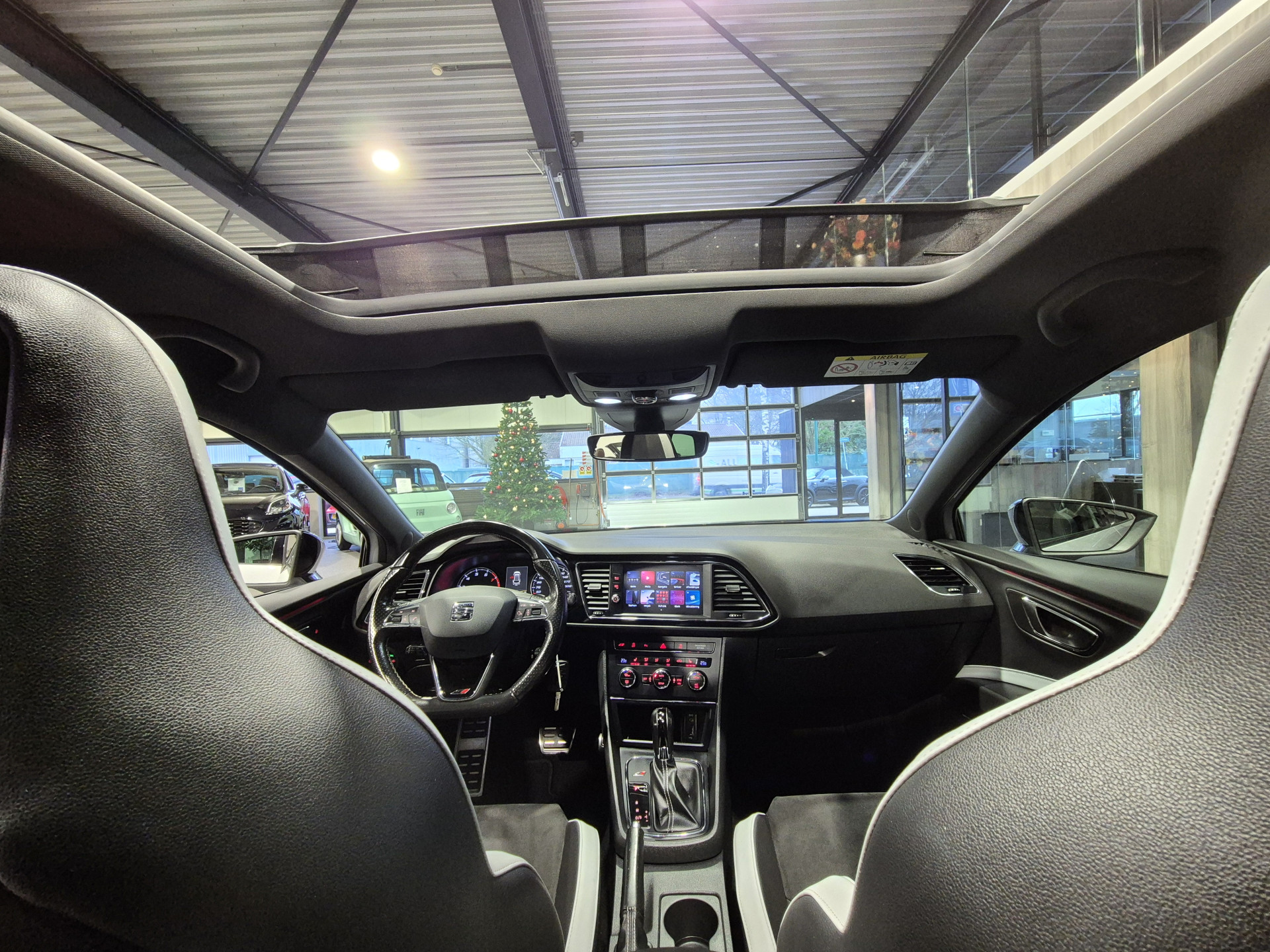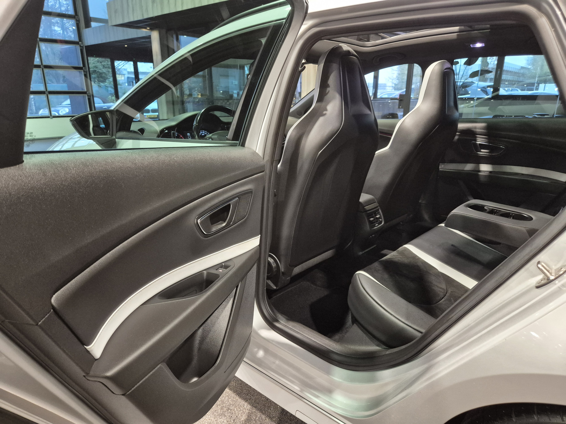Uitmuntende prestaties, dynamische rijeigenschappen en bakken vol met rijplezier, deze SEAT Leon ST levert het allemaal. Hij is van het bouwjaar 2016 en heeft 166415 kilometer gelopen. In deze auto vindt u een benzinemotor en een automatische transmissie. Het gevoel van luxe is inbegrepen dankzij het lederen interieur. Bij de complete uitrusting van deze auto hoort ook stoelverwarming. Het wijdse uitzicht door het glazen panoramadak maakt van elke rit een belevenis. In deze auto profiteert u onder andere ook van: 19 inch lichtmetalen velgen, LED koplampen, sportonderstel, adaptief dempingsysteem, dakspoiler en donker getint glas achter.