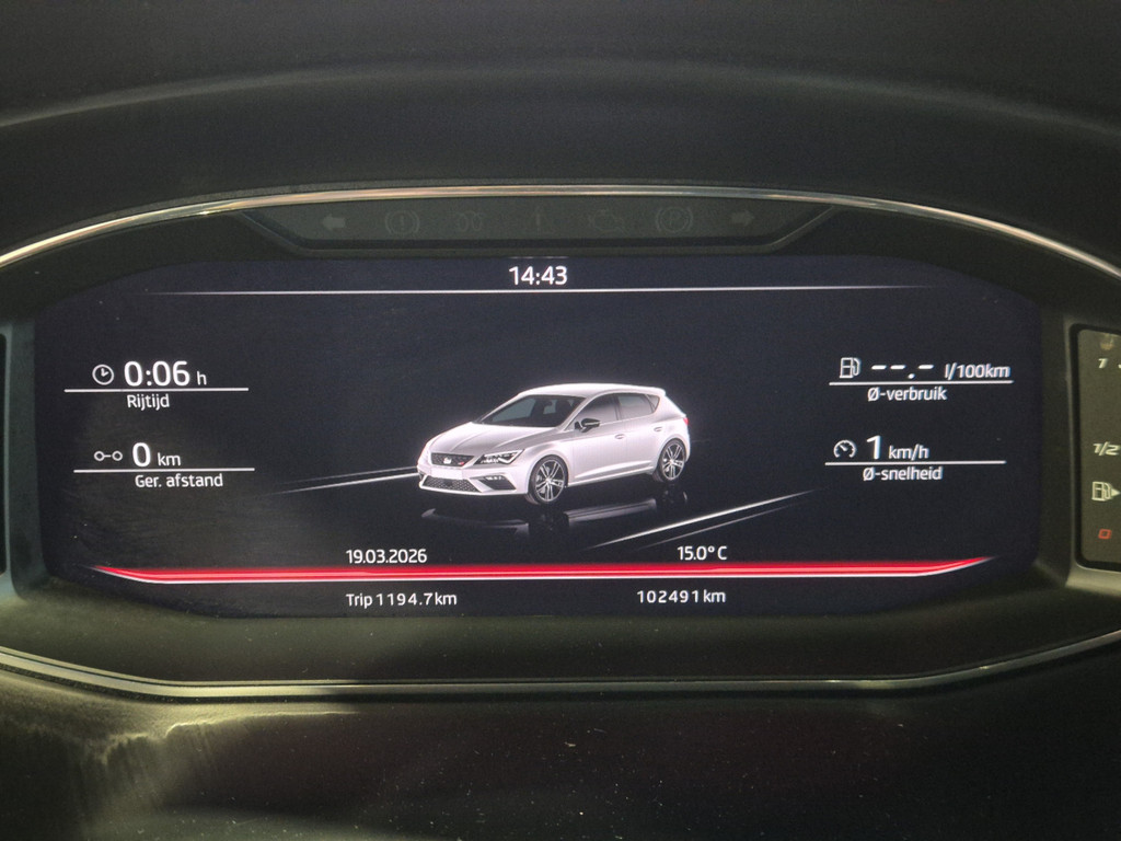 Het digitale dashboard rekent mee, denkt mee en rijdt mee. Alle info overzichtelijk in beeld, overal. Ongelukken of parkeerschade? Dat gebeurt u niet meer, met de achteruitrijcamera. In deze Leon vindt u niet alleen schakelaars op het stuur om het audiosysteem te bedienen en het full map navigatiesysteem, maar er is ook spraakbediening. Ook is de auto voorzien van automatische airconditioning. Het luxeniveau in deze SEAT is niet alleen gericht op comfort, maar ook op uw veiligheid. Tal van sensoren helpen u om de omgeving in de gaten te houden. De automatisch inschakelbare verlichting zorgt dat automatisch de verlichting wordt ingeschakeld als het donker wordt, wat bijvoorbeeld in tunnels erg handig is. En de regensensor zet de ruitenwissers aan zonder dat u eraan hoeft te denken. En deze auto heeft ook schakelpaddles aan het stuur, cruise control, automatisch dimmende binnenspiegel, isofix-aansluiting, centrale deurvergrendeling met afstandsbediening en boordcomputer als standaard uitrusting.