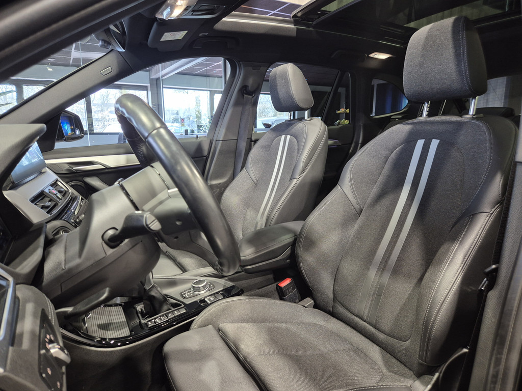 Het stijlvolle design van deze auto, de elegante contouren, zijn onmiskenbare rijcomfort en zijn krachtige motor maken van deze BMW X1 een auto die u met trots zult bezitten. Op de teller van deze auto staat slechts 27431 kilometer. De aandrijving van deze SUV komt voor rekening van een driecilinder motor en een automatische transmissie. Superieur rijgedrag onder moeilijke omstandigheden? Laat dat maar aan de vierwielaandrijving over! Ze zeggen weleens dat stijlvol en handig niet gauw samengaan. In dit geval wel: kijk maar naar het lederen interieur en de elektrisch bedienbare achterklep. Deze BMW X1 heeft verwarmbare voorstoelen, voor zowel bestuurder als bijrijder. Het glazen panoramadak geeft ook doordeweeks een vakantiegevoel. Wat een licht en zicht! Ook LED koplampen, zwarte hemelbekleding, getint glas, in delen neerklapbare achterbank, LED-achterlichten en snelheidsafhankelijke stuurbekrachtiging zijn aan boord.