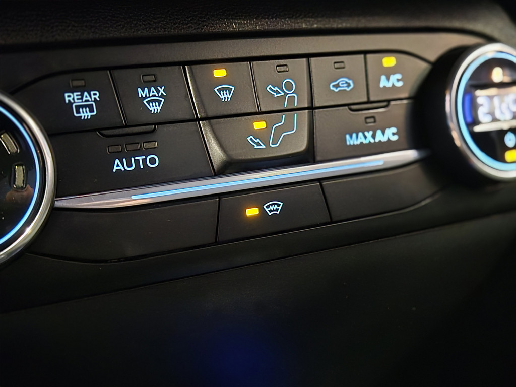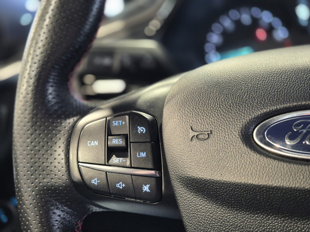 Het audio-installatiesysteem en het navigatiesysteem bedient u veilig met knoppen op het stuurwiel of met gesproken commando's. Bij de luxe van deze auto hoort ook automatische airconditioning. Inparkeren zonder angst voor schade. De parkeersensoren helpen u om moeiteloos in de kleinste parkeervakken te manoeuvreren. De cruise control zorgt voor een prettige, gelijkmatige koers en minder brandstofgebruik. Voorzien van keyless start. Of, in gewoon Nederlands: starten zonder sleutel. U bent in deze Ford ook voorzien van sportstuurwiel, centrale deurvergrendeling met afstandsbediening, boordcomputer en lederen versnellingspook.