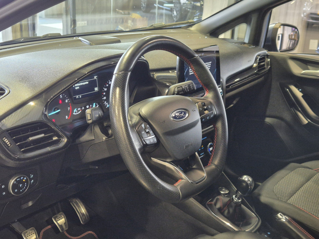 U rijdt gemakkelijk, comfortabel en zonder zorgen met deze Ford Fiesta. Hij heeft een benzinemotor en een handgeschakelde zesversnellingsbak. Goeie looks? Jazeker! Maar de sportstoelen zorgen ook voor een goed gesteunde en comfortabele zit. Ook is de auto voorzien van: 17 inch lichtmetalen velgen, LED koplampen, sportonderstel, getint glas, in delen neerklapbare achterbank en LED-achterlichten.
