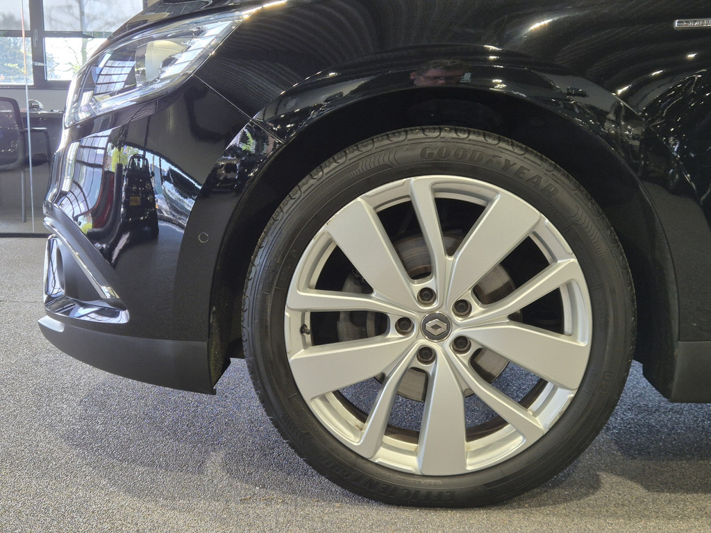 Inparkeren? Met de achteruitrijcamera heeft u er geen omkijken meer naar! Laat u onderweg niet afleiden, de bediening van het audio-installatiesysteem en ook het navigatiesysteem gaat met knoppen op het stuur. U verwacht natuurlijk automatische airconditioning in deze auto, en die is er dan ook. Achter het stuur van deze Renault bent u niet alleen. De auto kijkt als het ware met u mee tijdens de rit. De regensensor schakelt de ruitenwissers in als het nodig is en de automatisch inschakelbare verlichting doet de lichten voor u aan. Natuurlijk is er ook cruise control aan boord, waarmee u meer ontspannen en zuiniger rijdt. Extra opties op deze auto zijn: keyless entry, centrale deurvergrendeling met afstandsbediening, boordcomputer en verstelbaar stuur.