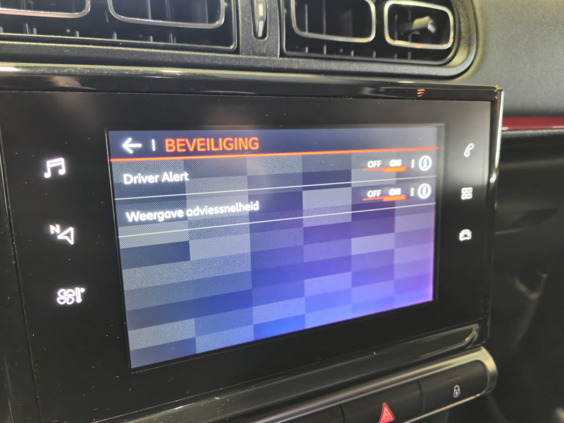 Zoals u mag verwachten van deze Citroën C3 is hij uitgerust met een reeks aan actieve veiligheidssystemen. De actuele snelheidslimiet, een inhaalverbod en andere verkeersborden. De verkeersborddetectie ondersteunt u tijdens elke rit. Indien u onbedoeld de rijstrook lijkt te verlaten, reageert het Lane-keeping systeem meteen en corrigeert. Het systeem voor vermoeidheidsherkenning neemt het waar als uw concentratie verslapt en geeft u dan een waarschuwing. Bovenop deze veiligheidsfeatures heeft deze Citroën bovendien hill hold functie, brake assist en bandenspanningcontrolesysteem.
