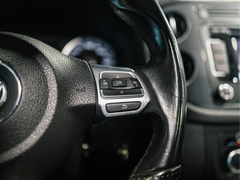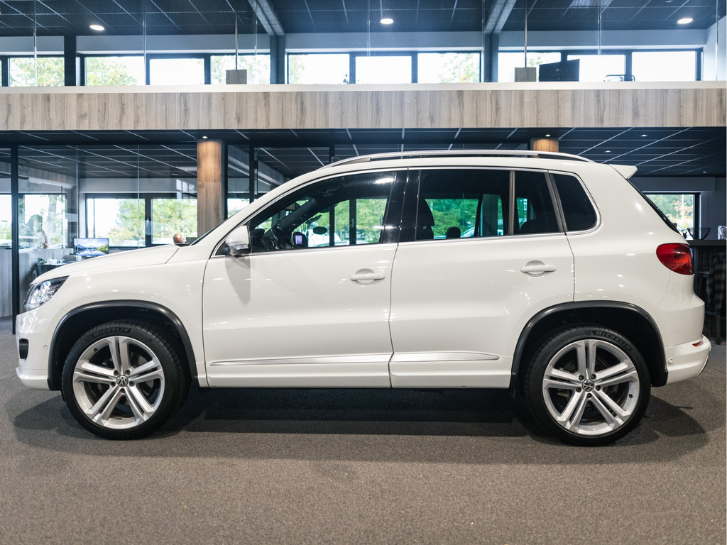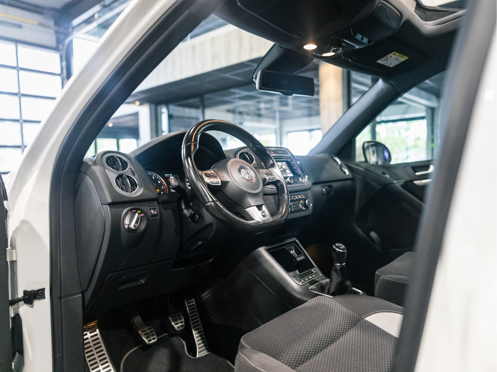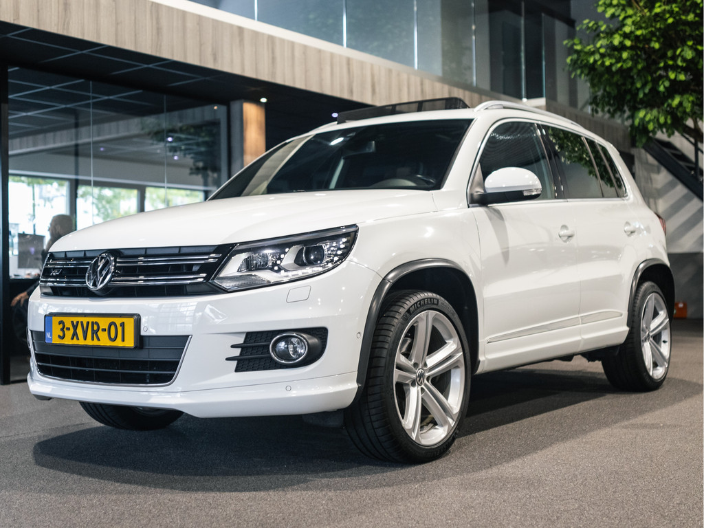 Met een auto als deze Volkswagen Tiguan komt u absoluut goed voor de dag. Deze auto komt uit 2014. Van binnen en van buiten is deze Volkswagen Tiguan uitgevoerd in R-Line styling. Sportief, stoer, eigenwijs. Een belangrijke eigenschap van iedere Volkswagen is zijn duurzaamheid. Dat ziet u ook aan deze Tiguan. De aandrijving van deze Volkswagen wordt verzorgd door een viercilinder benzinemotor en een handgeschakelde zesversnellingsbak. Uitstekende zitsteun en een strakke look? Daar zorgen de sportstoelen voor! Dat noemen ze nou een ruimtelijk effect: het elektrisch bediende glazen panoramadak. Met de krachtige xenonverlichting rijdt u ontspannen in het donker. Tot de voorzieningen van deze auto behoren 18 inch lichtmetalen velgen, sportonderstel, dakspoiler, donker getint glas achter en snelheidsafhankelijke stuurbekrachtiging.