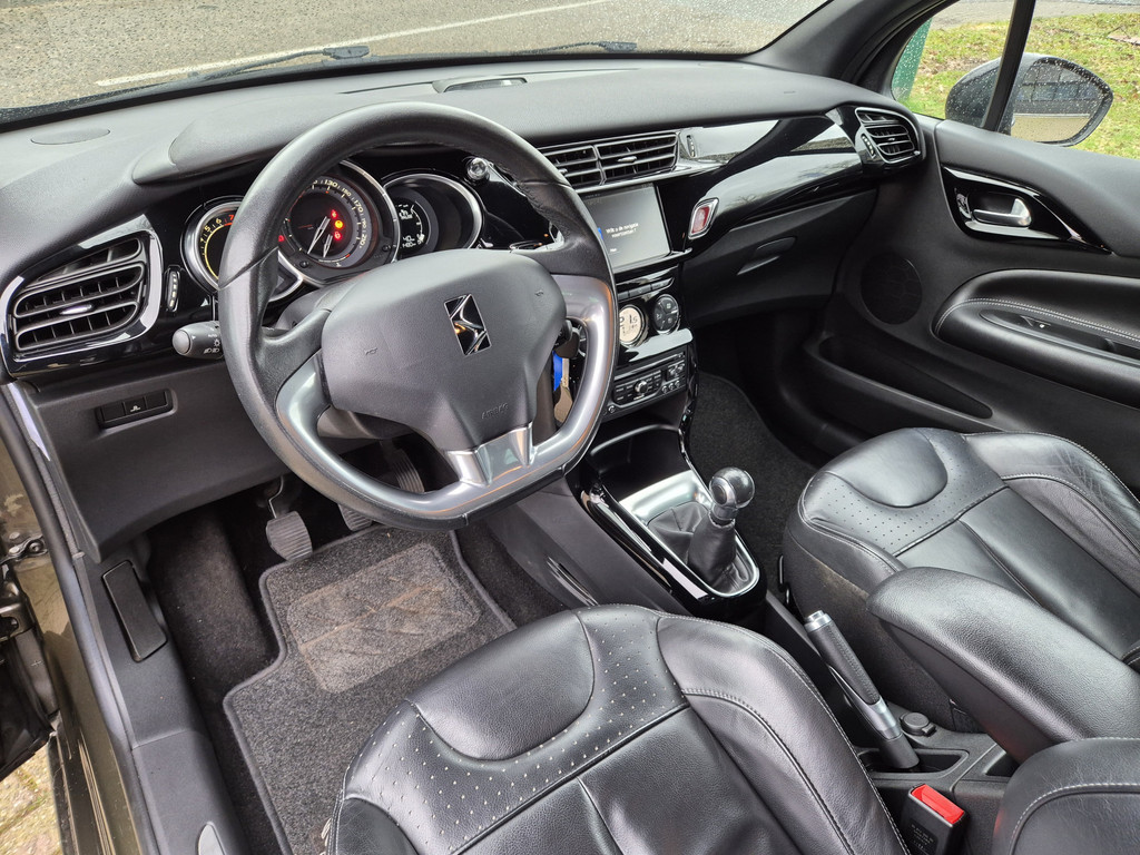 Met een auto als deze Citroën DS3 komt u absoluut goed voor de dag. Deze auto uit 2013 heeft 91473 kilometer gereden. De aandrijving komt voor rekening van een benzinemotor en een handgeschakelde vijfversnellingsbak. Met zijn lederen bekleding is deze Citroën comfortabel en stijlvol. 's Winters komen de verwarmbare voorstoelen heerlijk van pas. Ziet er goed uit, die sportstoelen. Maar waar het om gaat, is de solide zit onder alle omstandigheden. Tot de uitrusting behoren ook sportonderstel, LED-dagrijverlichting, zwarte hemelbekleding, elektrisch inklapbare buitenspiegels, donker getint glas achter en elektrisch bedienbare ramen voor.