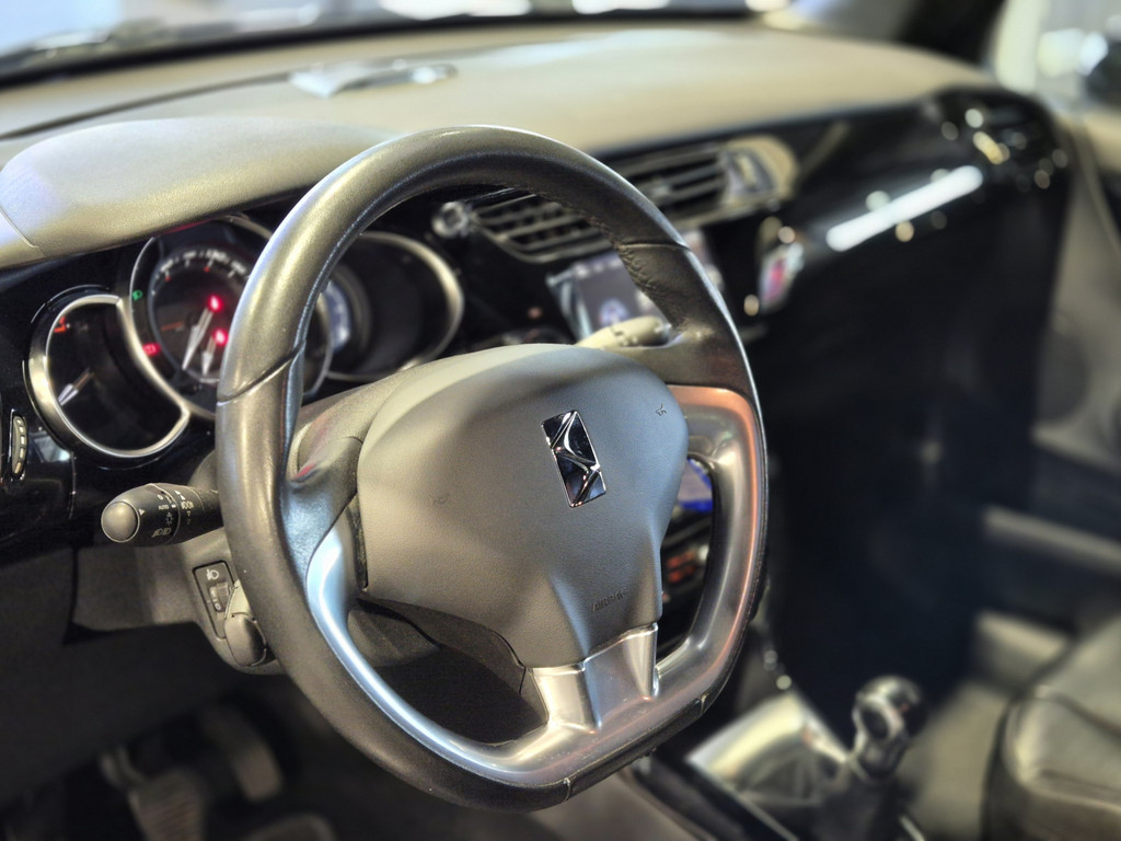 Met een auto als deze Citroën DS3 komt u absoluut goed voor de dag. Deze auto uit 2013 heeft 91473 kilometer gereden. De aandrijving komt voor rekening van een benzinemotor en een handgeschakelde vijfversnellingsbak. Met zijn lederen bekleding is deze Citroën comfortabel en stijlvol. 's Winters komen de verwarmbare voorstoelen heerlijk van pas. Ziet er goed uit, die sportstoelen. Maar waar het om gaat, is de solide zit onder alle omstandigheden. Tot de uitrusting behoren ook sportonderstel, LED-dagrijverlichting, zwarte hemelbekleding, elektrisch inklapbare buitenspiegels, donker getint glas achter en elektrisch bedienbare ramen voor.