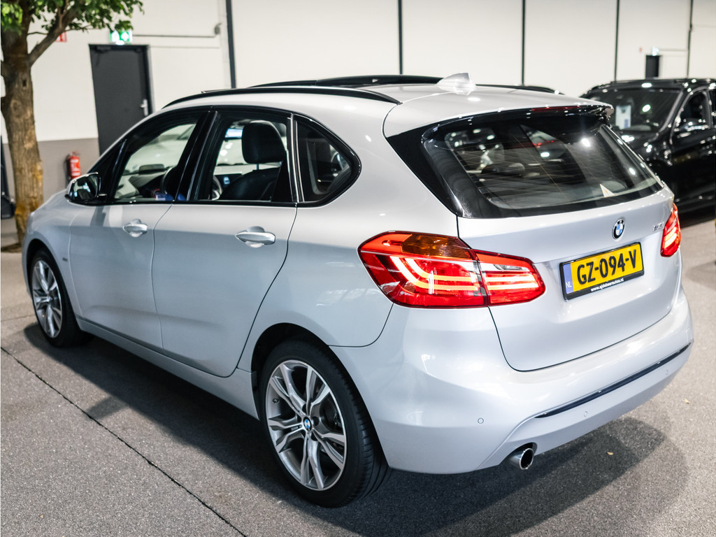 Een auto als de BMW 2-serie Active Tourer biedt een dynamiek en comfort die typerend zijn voor de producten van de Duitse autofabrikanten. Dit exemplaar is van het bouwjaar 2015, de teller staat op 124050 kilometer. Deze dealeronderhouden auto is van de eerste eigenaar. In deze auto vindt u een benzinemotor en een automatische transmissie. Altijd al een voorkeur voor een lederen interieur gehad? Deze BMW 2-serie Active Tourer heeft het! Voorin is het 's winters genieten met de verwarmbare voorstoelen voor zowel bestuurder als bijrijder. Natuurlijk zijn de sportstoelen super functioneel als het rechterpedaal ingetrapt wordt. Maar ook voor het uiterlijk doen ze veel! Overdag een weidse zichthoek en 's avonds het lichtspel in de binnenruimte: dat geeft het glazen panoramadak! Bij de uitrusting van deze BMW horen onder meer LED koplampen, zwarte hemelbekleding, getint glas en in delen neerklapbare achterbank.