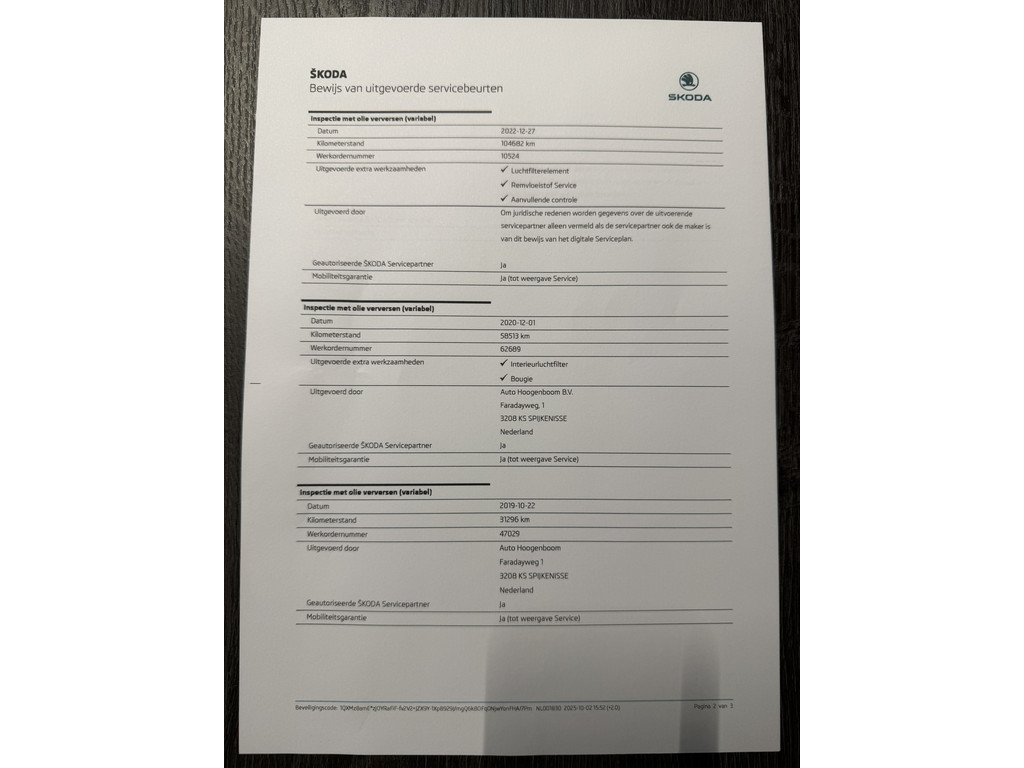 - Onderhoudshistorie