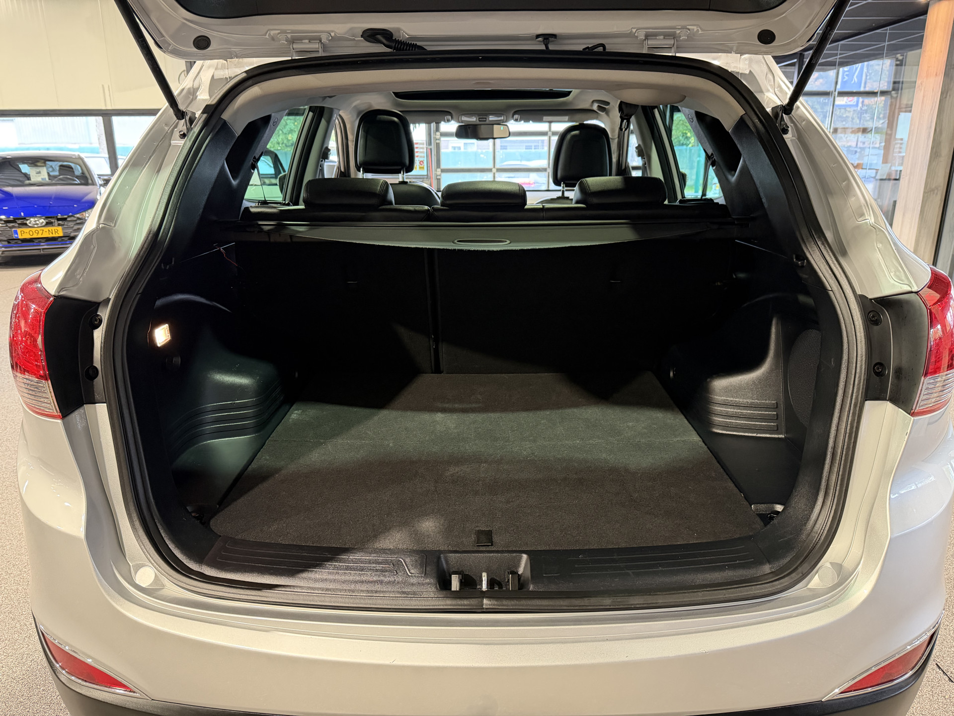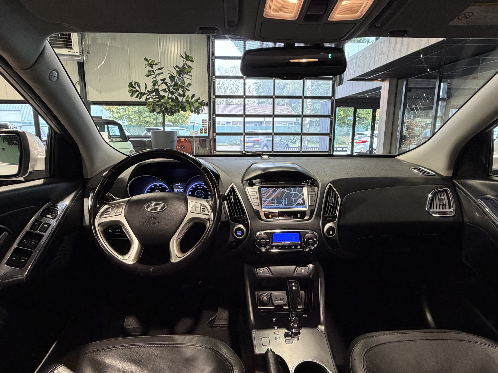 Soepel inparkeren in de krapste parkeervakken. De achteruitrijcamera maakt het mogelijk. De auto is voorzien van een trekhaak en is een uitstekende caravantrekker. U kunt het audiosysteem en het full map navigatiesysteem bedienen met de knoppen op het stuur. U verwacht natuurlijk automatische airconditioning in deze auto, en die is er dan ook. Het hoort bij een intelligente auto als deze dat hij zelf in staat is om zijn omgeving in de gaten te houden. Dat doet deze Hyundai met een automatisch inschakelbare verlichting en een regensensor. Ook cruise control, automatisch dimmende binnenspiegel, lederen stuur, centrale deurvergrendeling met afstandsbediening, bagage afdekhoes en boordcomputer zijn aan boord.