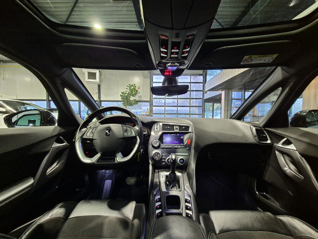 Geen nekkramp of spiegelwerk meer bij het achteruitrijden: de achteruitrijcamera kijkt en ziet alles! In één oogopslag weet u de complete systeemstatus van deze auto. Dankzij Connected Services. Gemakkelijk en veilig is de bediening het audio-installatiesysteem en het full map navigatiesysteem met knoppen op het stuur. De audio-kwaliteit is geweldig, dankzij de DAB-ontvangst. Automatische airconditioning verwarmt of koelt het interieur met een druk op de knop. Achter het stuur van deze DS bent u niet alleen. De auto kijkt als het ware met u mee tijdens de rit. De regensensor schakelt de ruitenwissers in als het nodig is en de automatisch inschakelbare verlichting doet de lichten voor u aan. En dan is deze auto ook nog eens voorzien van cruise control, keyless entry, automatisch dimmende binnenspiegel, lederen stuur, isofix-aansluiting en centrale deurvergrendeling met afstandsbediening.