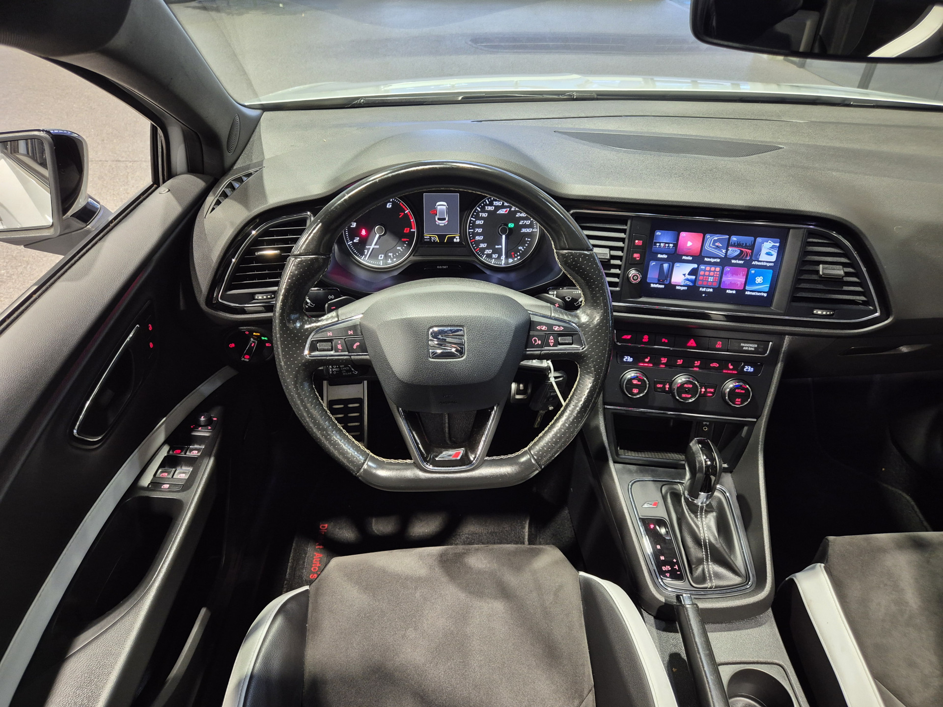 Uitmuntende prestaties, dynamische rijeigenschappen en bakken vol met rijplezier, deze SEAT Leon ST levert het allemaal. Hij is van het bouwjaar 2016 en heeft 166415 kilometer gelopen. In deze auto vindt u een benzinemotor en een automatische transmissie. Het gevoel van luxe is inbegrepen dankzij het lederen interieur. Bij de complete uitrusting van deze auto hoort ook stoelverwarming. Het wijdse uitzicht door het glazen panoramadak maakt van elke rit een belevenis. In deze auto profiteert u onder andere ook van: 19 inch lichtmetalen velgen, LED koplampen, sportonderstel, adaptief dempingsysteem, dakspoiler en donker getint glas achter.