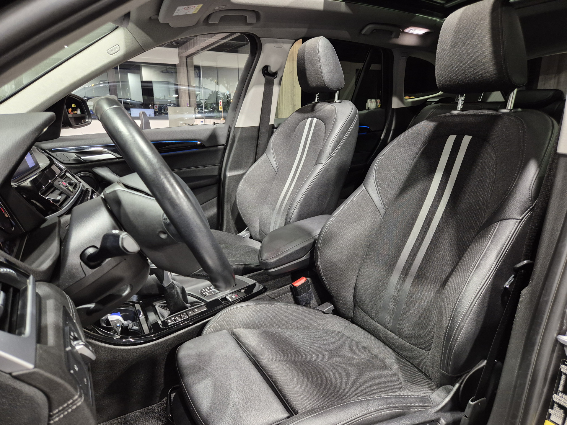 Stevig, robuust en vooruitstrevend in kwaliteit en prestaties. Dat is in een paar woorden de onverwoestbare reputatie van Duitse automerken. En terecht, ook in dit geval. Het is een krachtige driecilinder motor die deze SUV aandrijft. De vierwielaandrijving is natuurlijk ideaal op steile paadjes en landelijke weggetjes, maar net zo praktisch op vlakke Hollandse wegen waar de regen en natte sneeuw net wat meer vragen van de grip op de weg. Met één klik ontgrendelt u de elektrisch bedienbare achterklep, die voor u openzwaait. Mooi hoe deze auto slim en praktisch nut koppelt aan een stijlvolle binnenkant. Heeft u het lederen interieur al gezien? Op zelfs de koudste ochtend biedt de stoelverwarming een heerlijk welkom. Vergezichten krijgen een extra dimensie door het glazen panoramadak. Tot de uitrusting van deze BMW behoren ook 18 inch lichtmetalen velgen, LED koplampen, getint glas, in delen neerklapbare achterbank, LED-achterlichten en snelheidsafhankelijke stuurbekrachtiging.