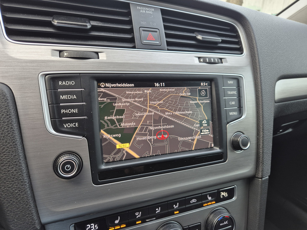 Strak inparkeren wordt een fluitje van een cent door de achteruitrijcamera. Nooit meer te warm of te koud. De automatische airconditioning zorgt altijd voor de temperatuur die u kiest. Natuurlijk is een complete auto als deze ook voorzien van sensoren die de omgeving in de gaten houden. Deze Volkswagen heeft niet alleen een automatisch inschakelbare verlichting aan boord, maar ook een regensensor. Niet te snel, niet langzaam maar precies goed: laat dat maar over aan de cruise control. Wat u ook in deze auto kunt vinden zijn navigatiesysteem, automatisch dimmende binnenspiegel, centrale deurvergrendeling met afstandsbediening, boordcomputer en verstelbaar stuur.