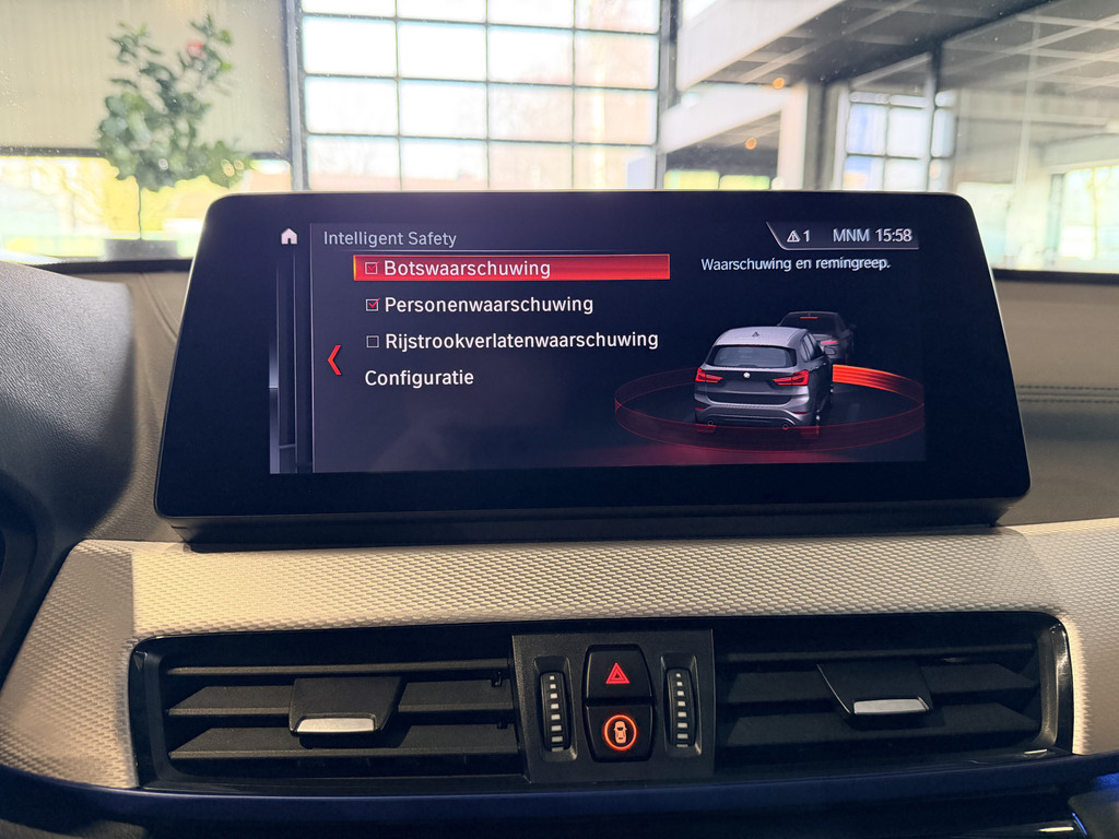 In de BMW X1 heeft uw veiligheid en die van uw omgeving prioriteit. Verkeersbord-detectie herkent verkeersborden en toont deze op het instrumentarium van de auto. Het forward collision warning-systeem waarschuwt indien een botsing dreigt met een voorliggend of tegemoetkomend voertuig. U bent mede dankzij head-up display, hill hold functie, brake assist en bandenspanningcontrolesysteem steeds veilig onderweg.