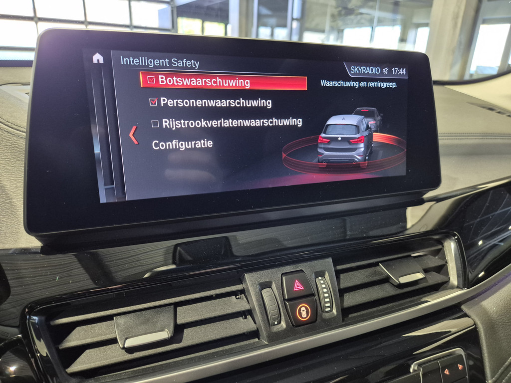 De BMW X1 is ook voorzien van ADAS. Deze Advanced Driver Assistence Systems fungeren als extra ogen en oren: ze houden voor u de weg in de gaten en grijpen in wanneer dat nodig is. Altijd uw blik op de weg: met de head-up display hoeft u geen moment uw ogen te verplaatsen. De info wordt geprojecteerd in het zichtveld voor u. U rijdt ook veiliger omdat deze auto voor u de verkeersborden langs de weg kan lezen. De belangrijkste borden worden op uw instrumentarium geprojecteerd, zodat u ze niet kunt missen. Forward collision warning waarschuwt voor een kop-staart botsing. De auto is ook uitgerust met hill hold functie, brake assist en bandenspanningcontrolesysteem.