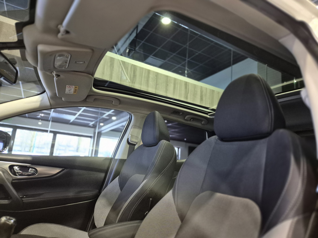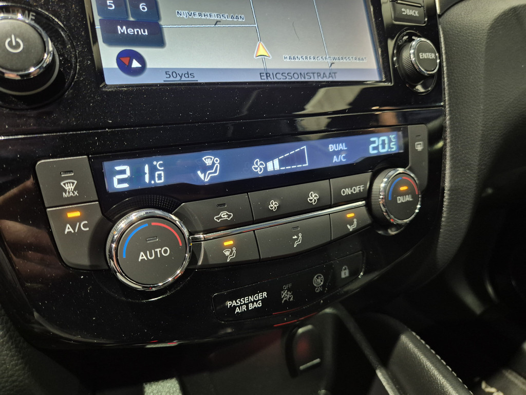 Elk van de vier camera's op deze auto draagt bij aan het creëren van een onbelemmerd uitzicht van 360 graden rondom de auto. Ook is de auto voorzien van automatische airconditioning. De parkeersensoren waarschuwen wanneer u te krap inparkeert of dat ene paaltje niet hebt gezien. In deze Nissan kunt u zich concentreren op het verkeer, terwijl de auto de omgeving voor u in de gaten houdt. Een automatisch inschakelbare verlichting zorgt dat de verlichting aangaat als het donkerder wordt - in tunnels bijvoorbeeld - en de regensensor schakelt de ruitenwissers in als het nodig is. U hoeft er niets aan te doen. De voordelen van de aanwezige cruise control hoeven we niet uit te leggen. Een mooie, constante snelheid - niet te snel, niet te langzaam. Precies goed. Met navigatiesysteem, DAB ontvangst, keyless entry, automatisch dimmende binnenspiegel, centrale deurvergrendeling met afstandsbediening en verstelbaar stuur is deze Nissan helemaal compleet.