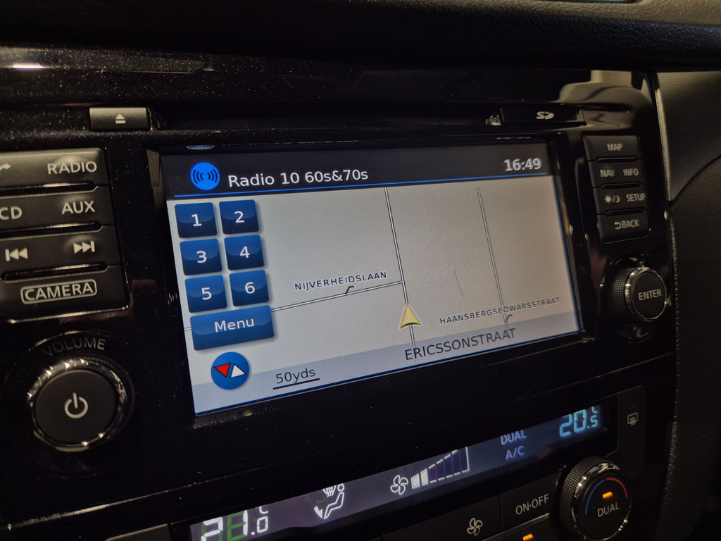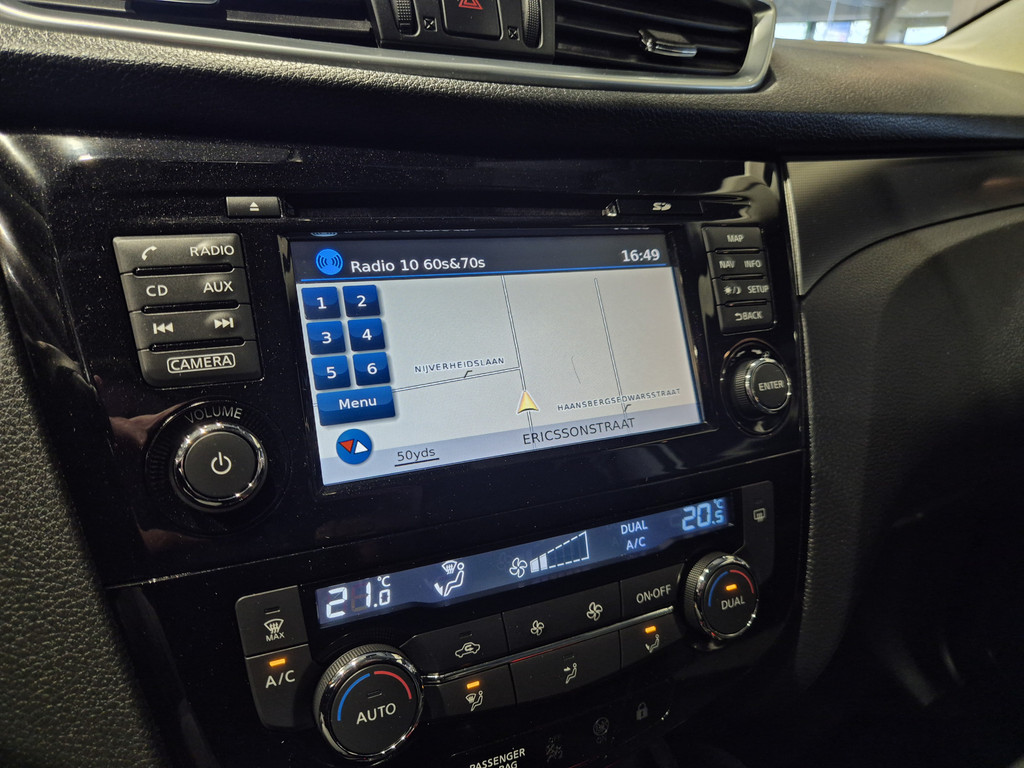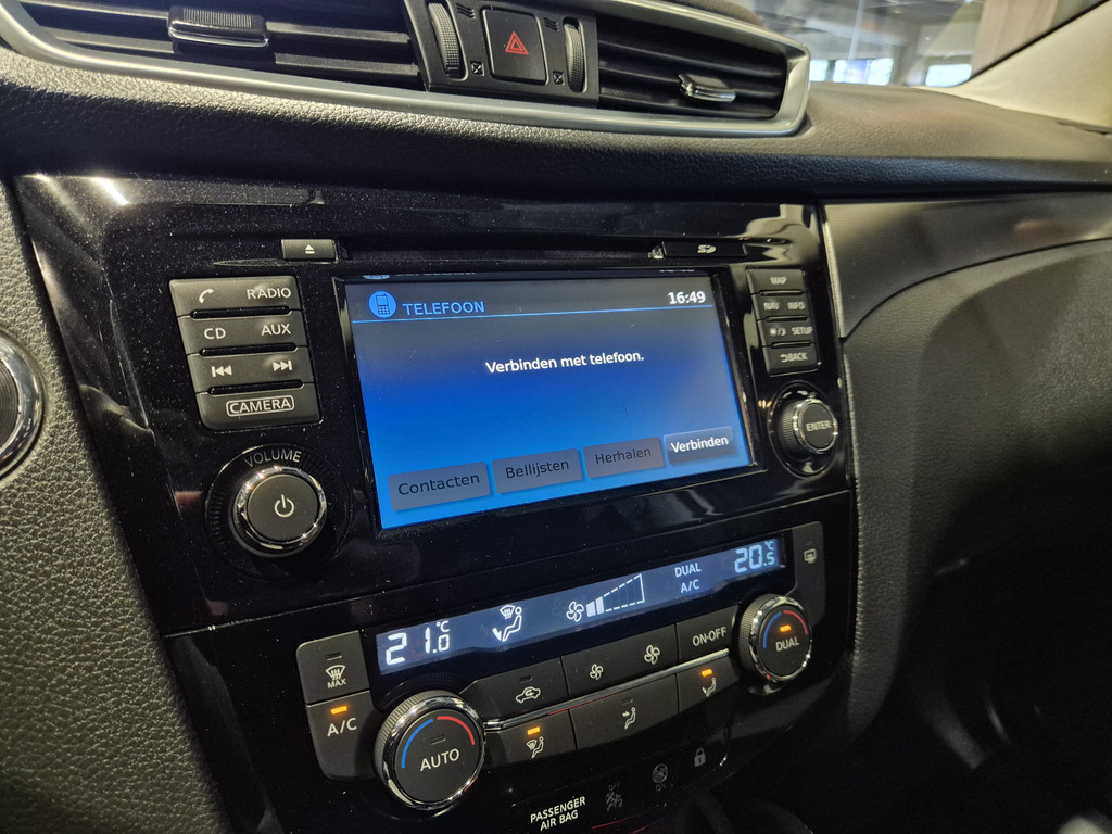 Elk van de vier camera's op deze auto draagt bij aan het creëren van een onbelemmerd uitzicht van 360 graden rondom de auto. Ook is de auto voorzien van automatische airconditioning. De parkeersensoren waarschuwen wanneer u te krap inparkeert of dat ene paaltje niet hebt gezien. In deze Nissan kunt u zich concentreren op het verkeer, terwijl de auto de omgeving voor u in de gaten houdt. Een automatisch inschakelbare verlichting zorgt dat de verlichting aangaat als het donkerder wordt - in tunnels bijvoorbeeld - en de regensensor schakelt de ruitenwissers in als het nodig is. U hoeft er niets aan te doen. De voordelen van de aanwezige cruise control hoeven we niet uit te leggen. Een mooie, constante snelheid - niet te snel, niet te langzaam. Precies goed. Met navigatiesysteem, DAB ontvangst, keyless entry, automatisch dimmende binnenspiegel, centrale deurvergrendeling met afstandsbediening en verstelbaar stuur is deze Nissan helemaal compleet.