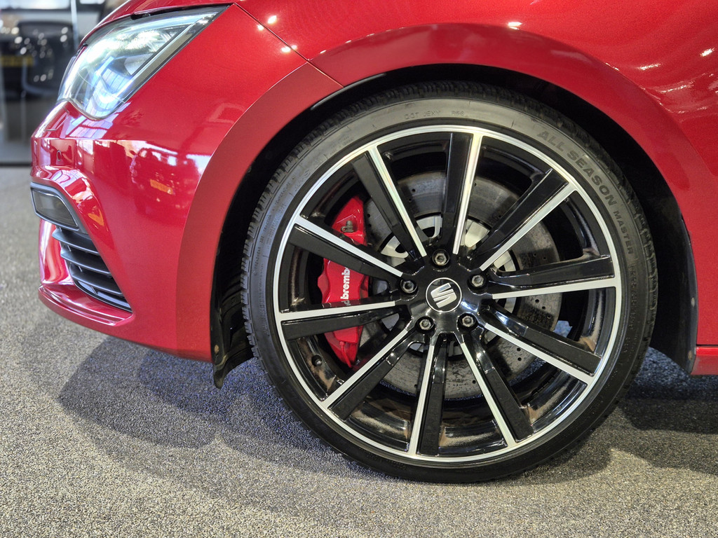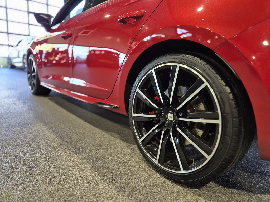 De indrukwekkende vormen en de topprestaties van deze SEAT Leon staan garant voor ultiem rijplezier. Deze auto uit 2018 heeft een tellerstand van 102491 kilometer. De uitstekende prestaties van deze auto komen van de viercilinder benzinemotor en de automatische transmissie. Winters instappen is er niet meer bij dankzij de stoelverwarming. Als u blij wordt van licht en ruimte dan zult u zeker genieten van het elektrisch bediende panoramadak. Verder is de SEAT uitgerust met: 19 inch lichtmetalen velgen, LED koplampen, sportonderstel, adaptief dempingsysteem, donker getint glas achter en in delen neerklapbare achterbank.