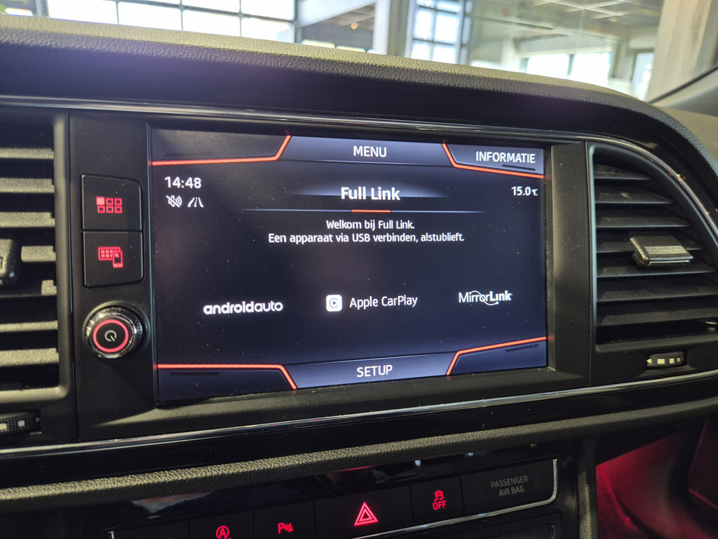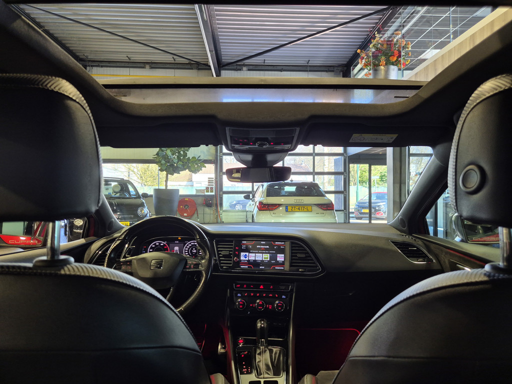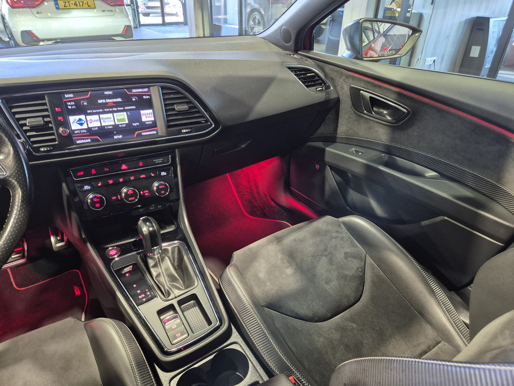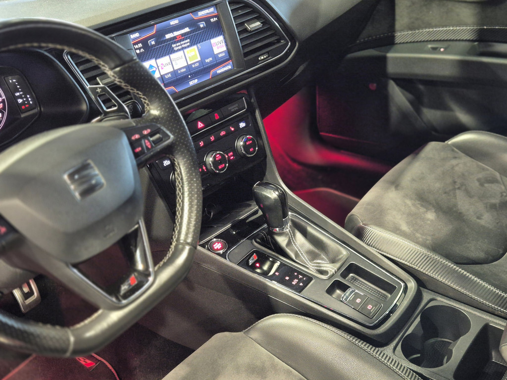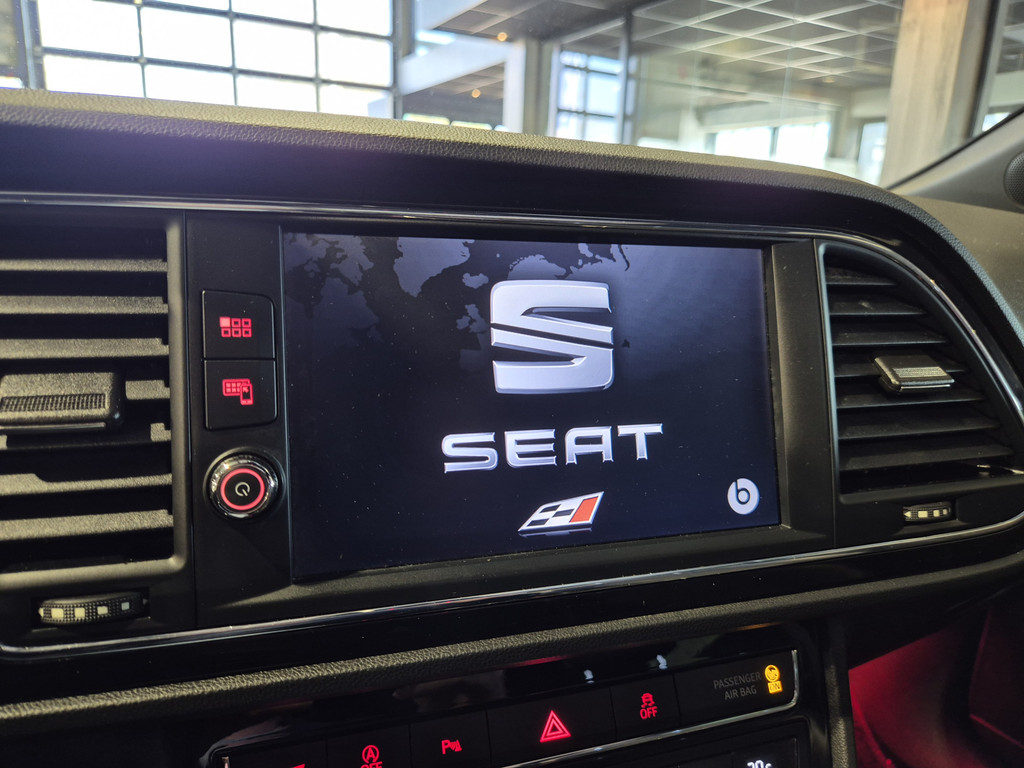 Het digitale dashboard rekent mee, denkt mee en rijdt mee. Alle info overzichtelijk in beeld, overal. Ongelukken of parkeerschade? Dat gebeurt u niet meer, met de achteruitrijcamera. In deze Leon vindt u niet alleen schakelaars op het stuur om het audiosysteem te bedienen en het full map navigatiesysteem, maar er is ook spraakbediening. Ook is de auto voorzien van automatische airconditioning. Het luxeniveau in deze SEAT is niet alleen gericht op comfort, maar ook op uw veiligheid. Tal van sensoren helpen u om de omgeving in de gaten te houden. De automatisch inschakelbare verlichting zorgt dat automatisch de verlichting wordt ingeschakeld als het donker wordt, wat bijvoorbeeld in tunnels erg handig is. En de regensensor zet de ruitenwissers aan zonder dat u eraan hoeft te denken. En deze auto heeft ook schakelpaddles aan het stuur, cruise control, automatisch dimmende binnenspiegel, isofix-aansluiting, centrale deurvergrendeling met afstandsbediening en boordcomputer als standaard uitrusting.