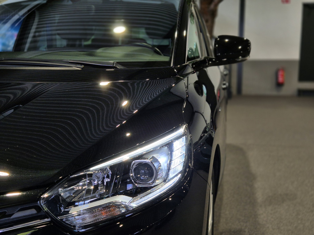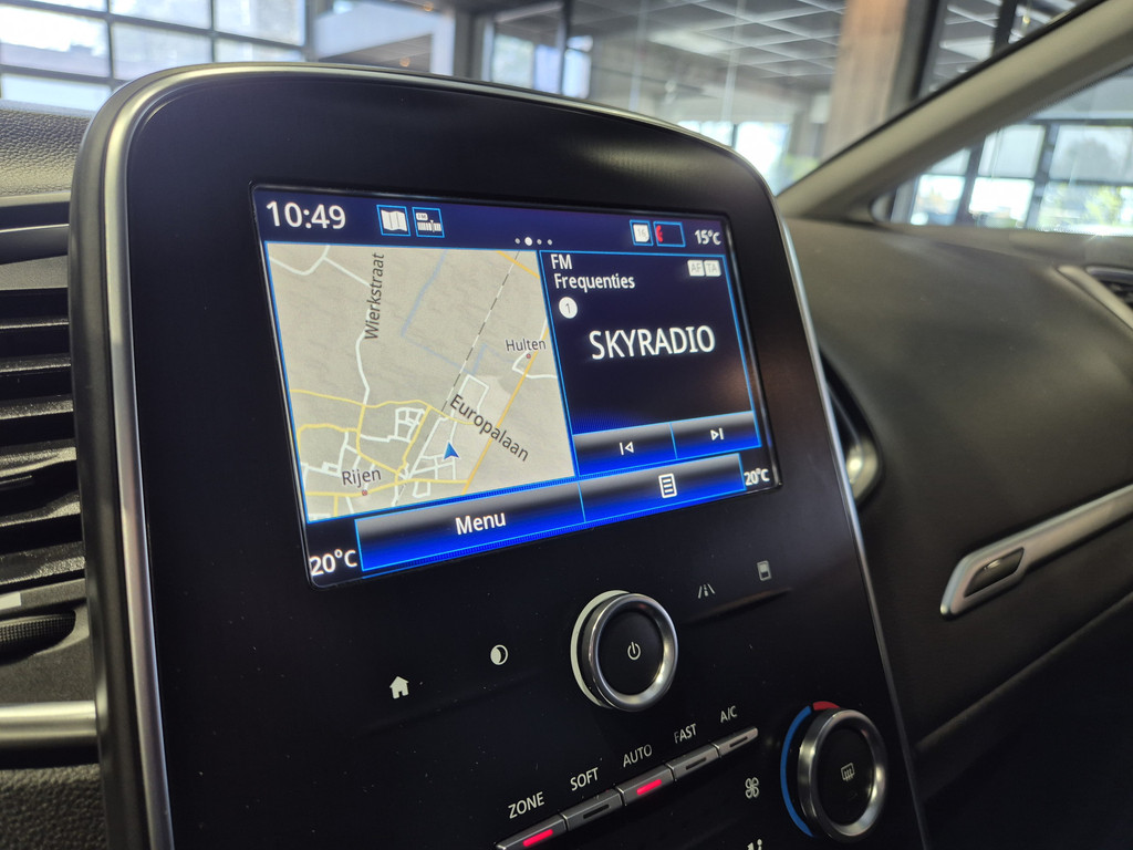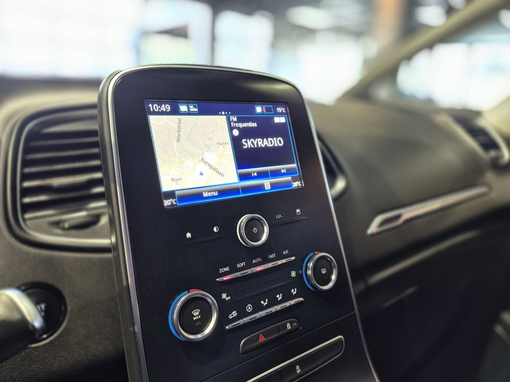 Inparkeren? Met de achteruitrijcamera heeft u er geen omkijken meer naar! Laat u onderweg niet afleiden, de bediening van het audio-installatiesysteem en ook het navigatiesysteem gaat met knoppen op het stuur. U verwacht natuurlijk automatische airconditioning in deze auto, en die is er dan ook. Achter het stuur van deze Renault bent u niet alleen. De auto kijkt als het ware met u mee tijdens de rit. De regensensor schakelt de ruitenwissers in als het nodig is en de automatisch inschakelbare verlichting doet de lichten voor u aan. Natuurlijk is er ook cruise control aan boord, waarmee u meer ontspannen en zuiniger rijdt. Extra opties op deze auto zijn: keyless entry, centrale deurvergrendeling met afstandsbediening, boordcomputer en verstelbaar stuur.