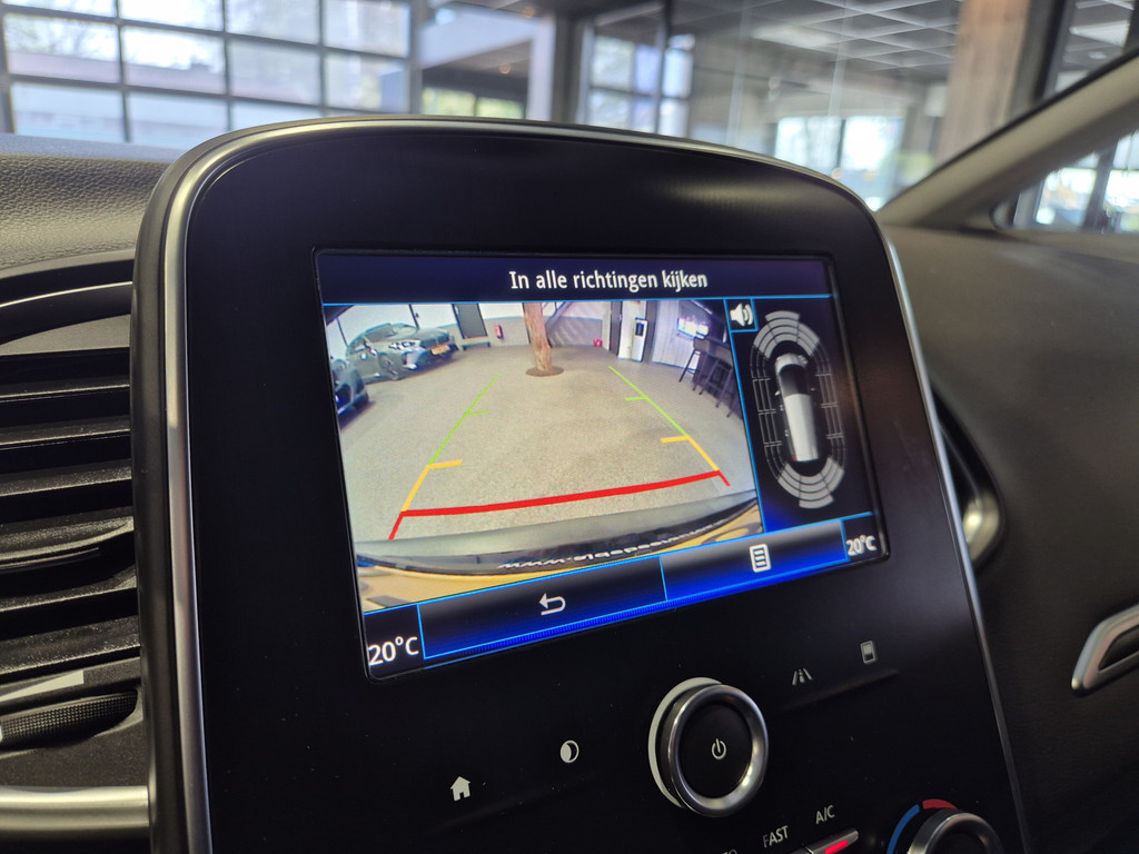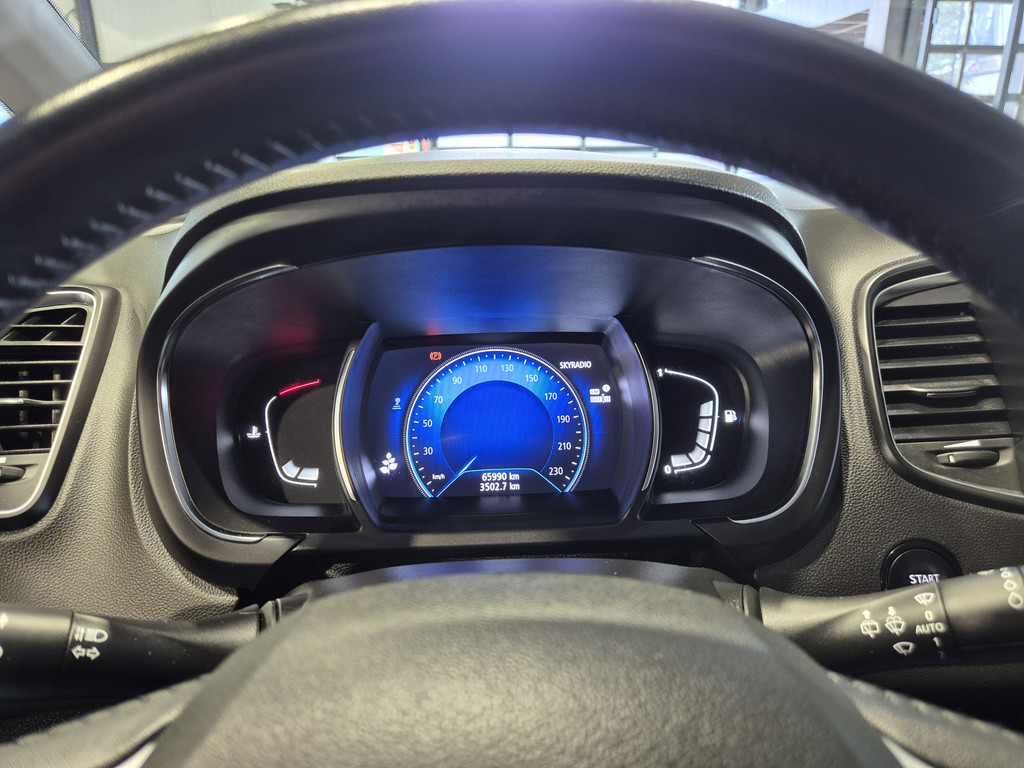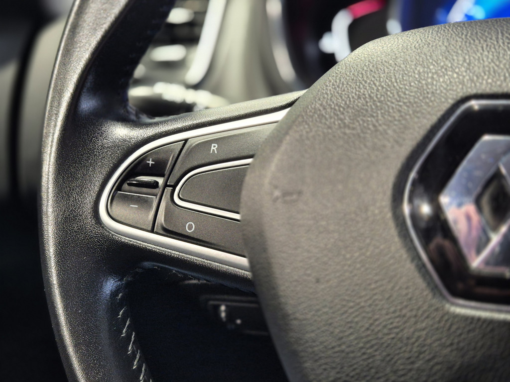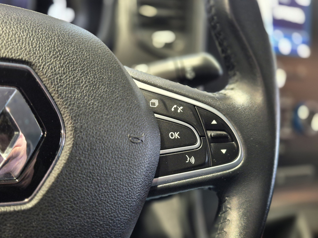 Inparkeren? Met de achteruitrijcamera heeft u er geen omkijken meer naar! Laat u onderweg niet afleiden, de bediening van het audio-installatiesysteem en ook het navigatiesysteem gaat met knoppen op het stuur. U verwacht natuurlijk automatische airconditioning in deze auto, en die is er dan ook. Achter het stuur van deze Renault bent u niet alleen. De auto kijkt als het ware met u mee tijdens de rit. De regensensor schakelt de ruitenwissers in als het nodig is en de automatisch inschakelbare verlichting doet de lichten voor u aan. Natuurlijk is er ook cruise control aan boord, waarmee u meer ontspannen en zuiniger rijdt. Extra opties op deze auto zijn: keyless entry, centrale deurvergrendeling met afstandsbediening, boordcomputer en verstelbaar stuur.