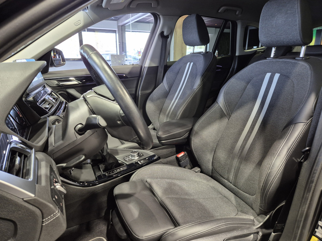 De vormgeving van deze BMW X1 is stijlvol maar ingetogen en dat maakt meteen duidelijk dat u van deze auto pure kwaliteit mag verwachten. Als u een laag brandstofverbruik en goede prestaties belangrijk vindt, dan bent u uitstekend bediend met de driecilinder motor. Steile weggetjes en modderpaadjes vormen geen enkel probleem dankzij de vierwielaandrijving. Met één klik ontgrendelt u de elektrisch bedienbare achterklep, die voor u openzwaait. Mooi hoe deze auto slim en praktisch nut koppelt aan een stijlvolle binnenkant. Heeft u het lederen interieur al gezien? 's Winters komen de verwarmbare voorstoelen heerlijk van pas. De uitmonstering van deze auto wordt gecompleteerd door onder meer 18 inch lichtmetalen velgen, LED koplampen, getint glas, in delen neerklapbare achterbank, LED-achterlichten en snelheidsafhankelijke stuurbekrachtiging.